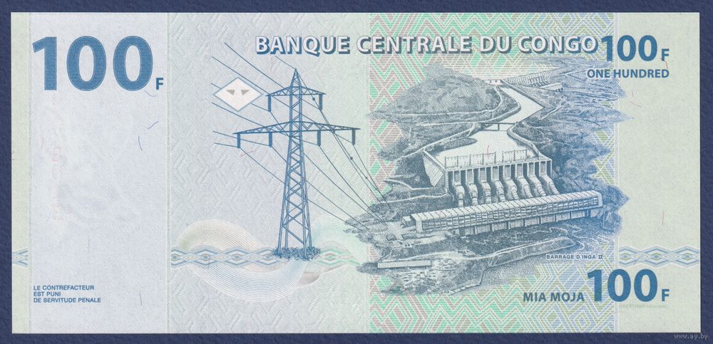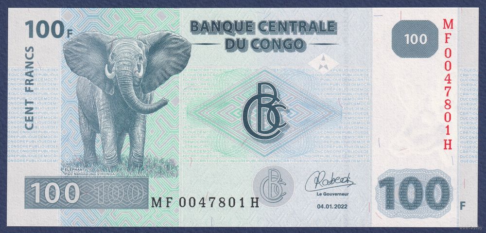 Конго, 100 франков 2022 г., P-W98B (MF, Oberthur, cлон, национальный парк Вирунга), UNC
