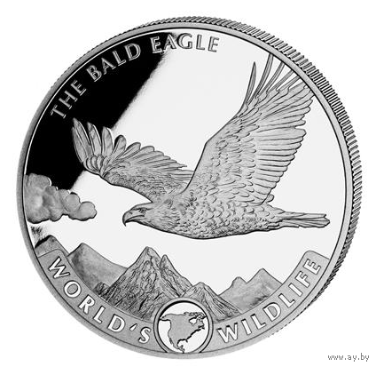 Третий выпуск ежегодной серии World's Wildlife посвящен белоголовому орлану (Haliaeetus leucocephalus). Дизайн монеты премиум-класса, Пруф лайк, отчеканенной из чистого серебра 99,99%, изображает белоголового орлана, летящего над горным хребтом. Надписи "БЕЛОГОЛОВЫЙ ОРЛАН" и "ДИКАЯ природа МИРА" подчеркивают дизайн. На реверсе изображен герб Демократической Республики Конго. Белоголовый орлан является геральдической птицей США, что уже указывает на область его распространения на восточном и западном побережьях США и на Аляске. Вместе с калифорнийским кондором белоголовый орлан является одной из крупнейших хищных птиц Северной Америки - он достигает длины тела 70-90 см и размаха крыльев 1,80-2,50 метра. Визуально он особенно узнаваем по своей одноименной белой голове и шее. Величественное животное находится под охраной видов в Соединенных Штатах с 1940 года. Лимитированная монета премиум-класса поставляется в защитной капсуле для монет. Тираж 30 000 шт.