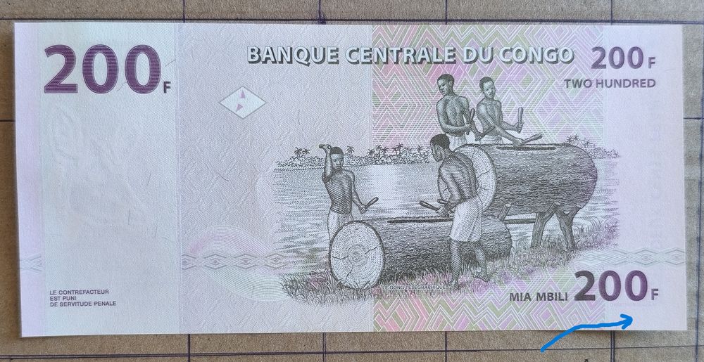 Надпись на реверсе, под цифрой -- 200 -- в правом нижнем углу, в две строчки: