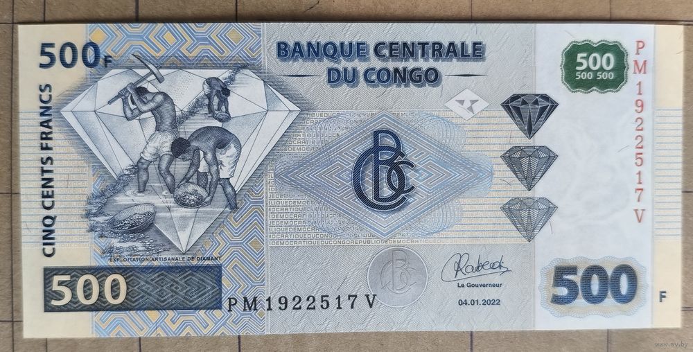 Конго (ДР) 500 франков 2022 г., P:96, надпечатка см. в описании