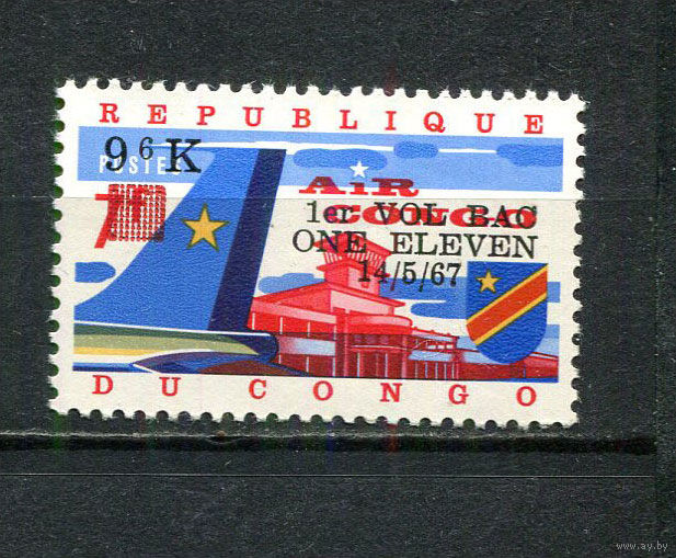 Конго (Заир) - 1967 - 1-ый полет самолета BAC 1-11 авиакомпании AIR CONGO. Надпечатка 1er VOL BAC ONE ELEVEN 14/5/67 - [Mi. 303] - полная серия - 1 марка. MNH. (Лот 15Ji)-TG2P32