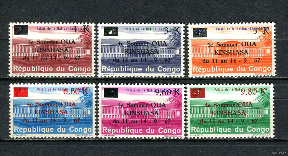 Конго (Заир) - 1967 - Организация африканского единства. Конференция в Киншасе. Надпечатка 4e Sommet OUA KINSHASA du 11 au 14-9-67 - [Mi. 290-295] - полная серия - 6 марок. MNH. (Лот 39JH)-TG2P27