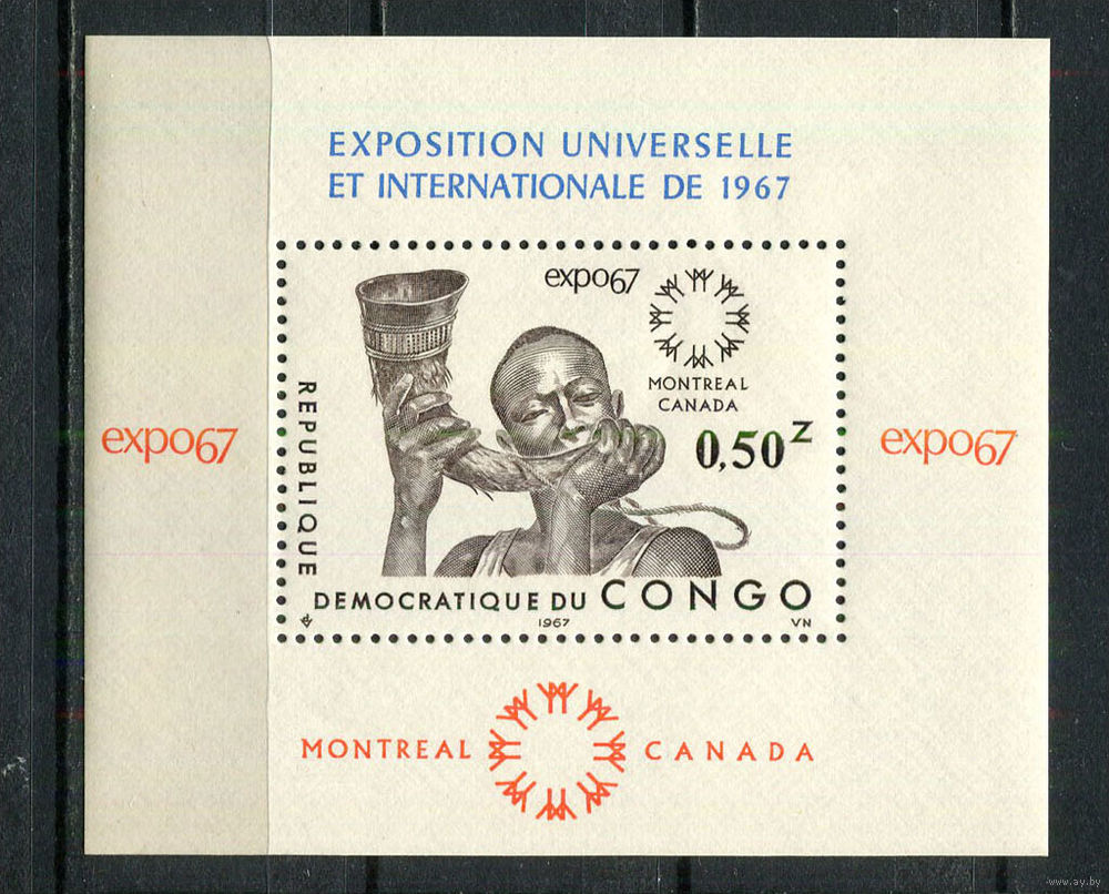 Конго (Заир) - 1967 - Всемирная выставка EXPO' 67 в Монреале - [Mi. bl. 13] - 1 блок. MNH. (Лот 19Ji)-TG2P32