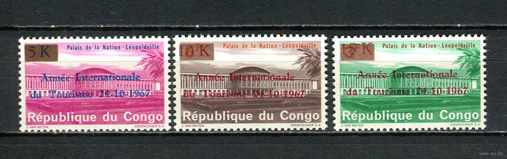 Конго (Заир) - 1968 - Международный год туризма. Надпечатка ANNEE INTERNATIONALE DU TOURISME 24-10-1967 - [Mi. 306-308] - полная серия - 3 марки. MNH. (Лот 40JH)-TG2P27
