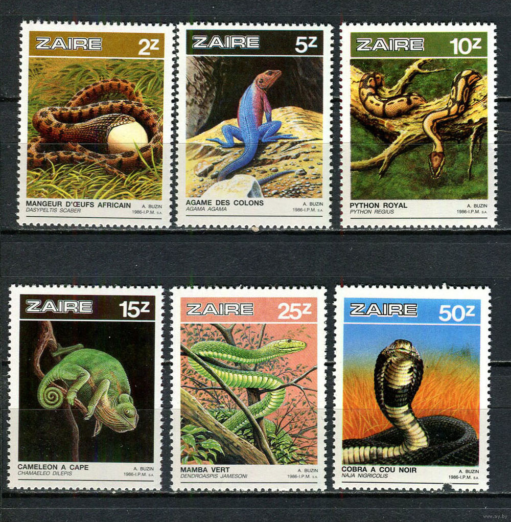 Конго (Заир) - 1987 - Рептилии - (ном. 50 с повреждением) - [Mi. 939-944] - полная серия - 6 марок. MNH. (Лот 18Ji)-TG2P32