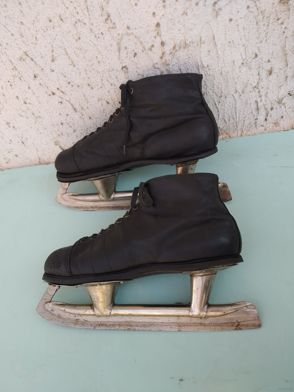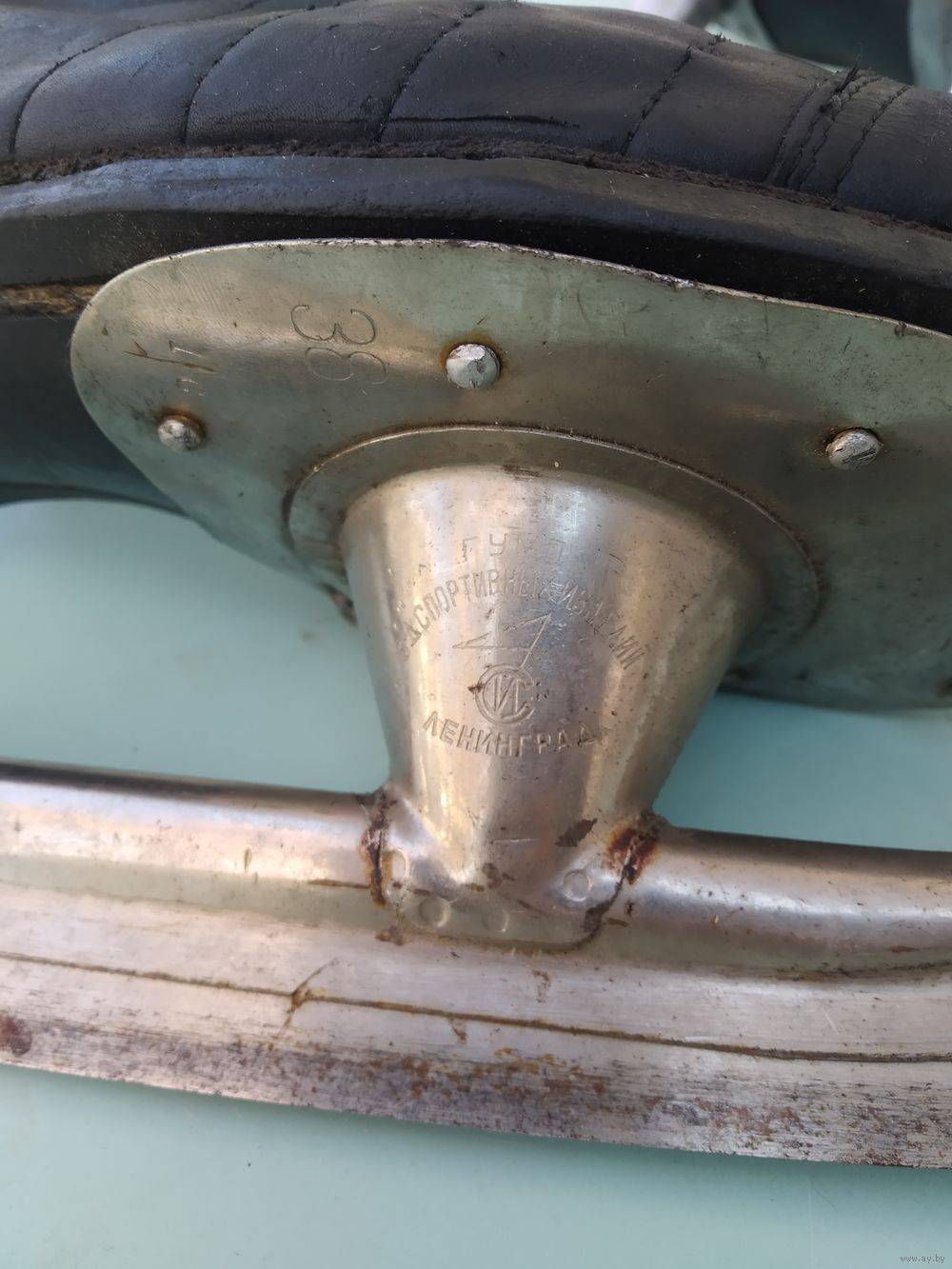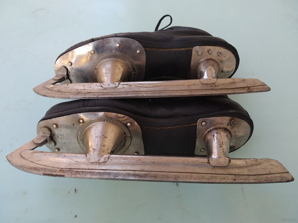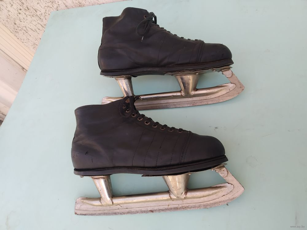 Коньки СССР легендарные "га́ги". Длина стельки 24.4-24.6 см, что соответствует 38-38.5 размеру. Но лучше брать с запасом (на теплые носочки), т.е. для 36-37 размера. Натуральная советская кожа. Состояние – на фото.