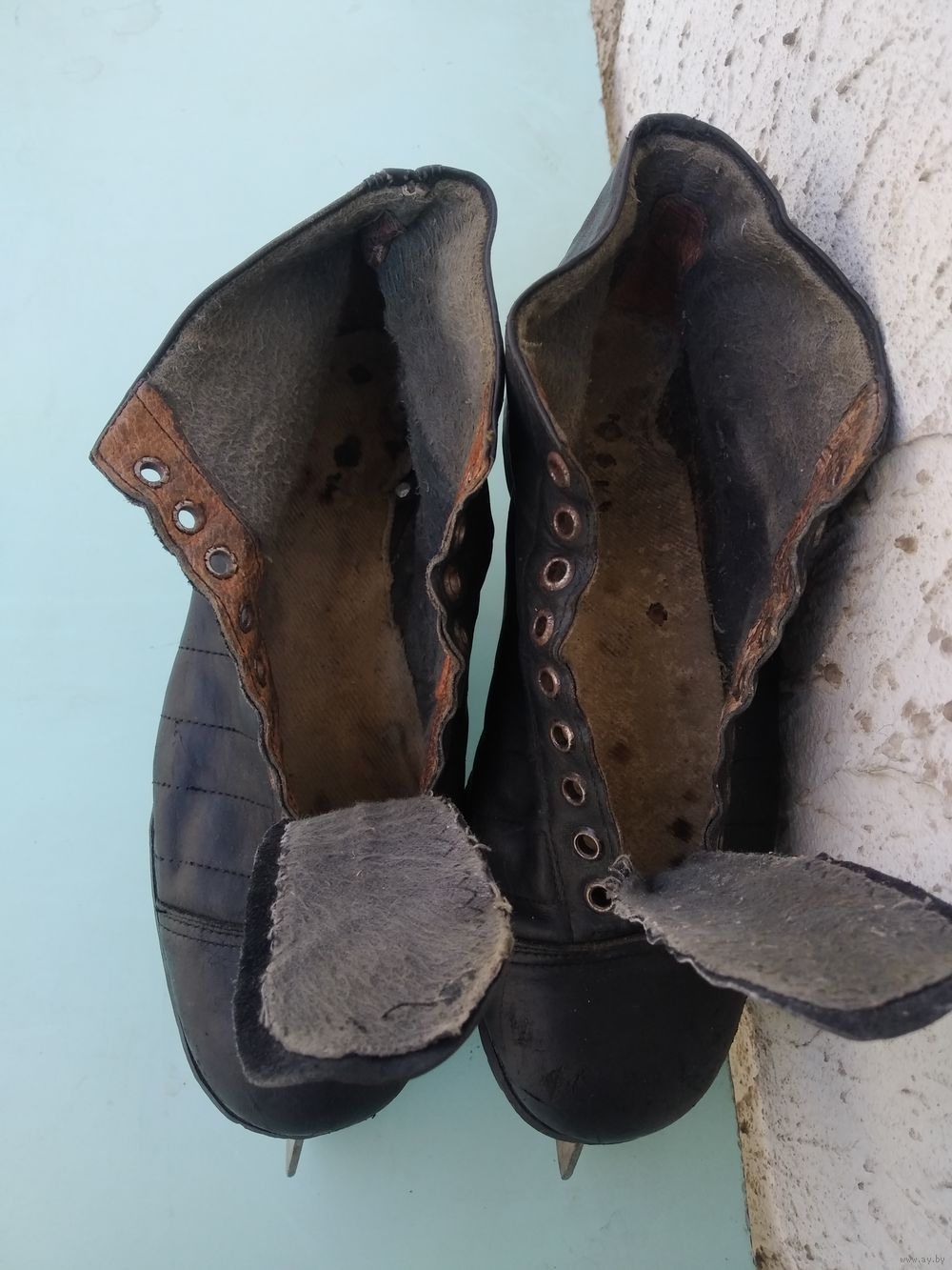 Коньки СССР легендарные "га́ги". Длина стельки 24.4-24.6 см, что соответствует 38-38.5 размеру. Но лучше брать с запасом (на теплые носочки), т.е. для 36-37 размера. Натуральная советская кожа. Состояние – на фото.