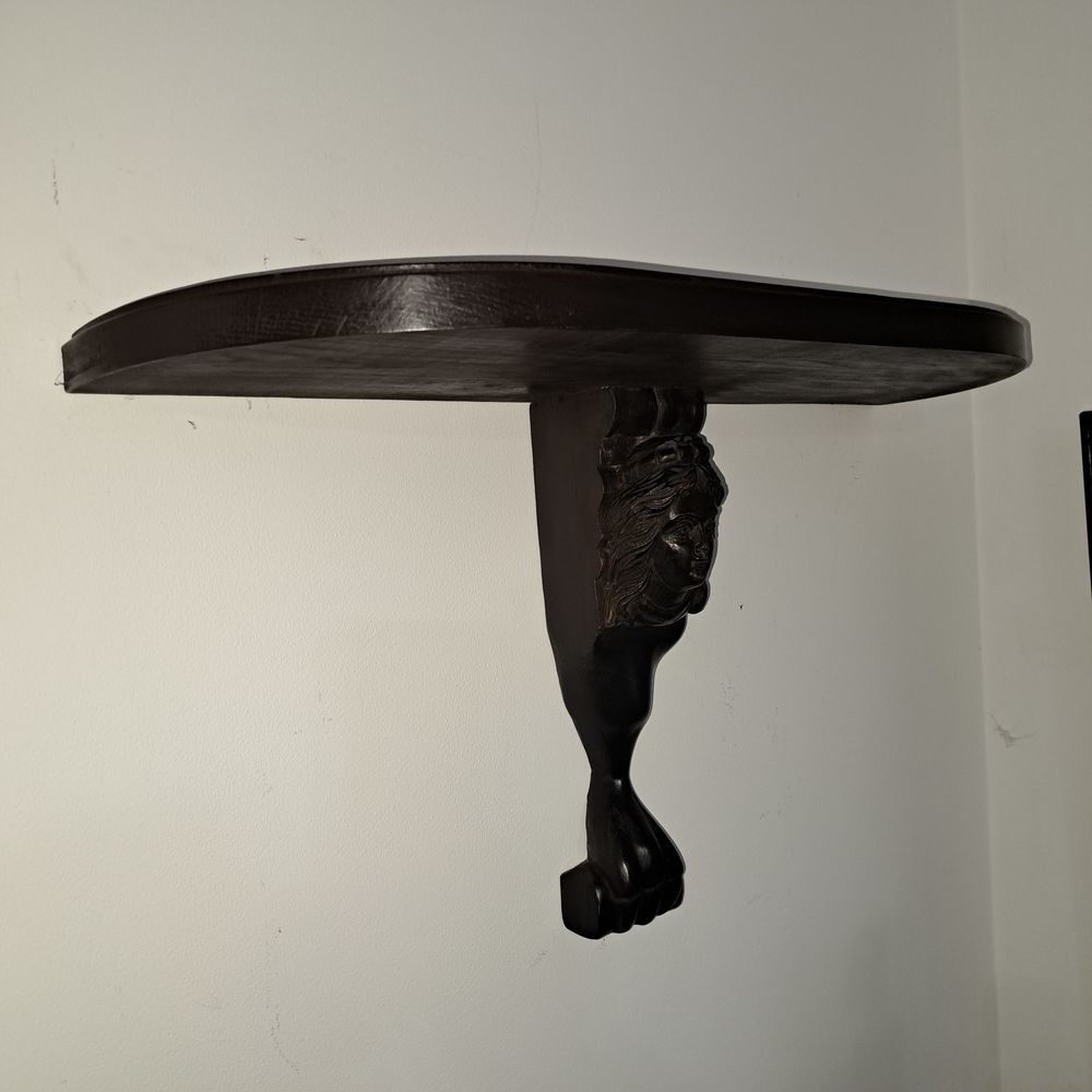 Очень красивая консоль. Ручная работа. Резьба. Ширина 60 см. Высота 36 см. Глубина 20 см. В отличном состоянии.