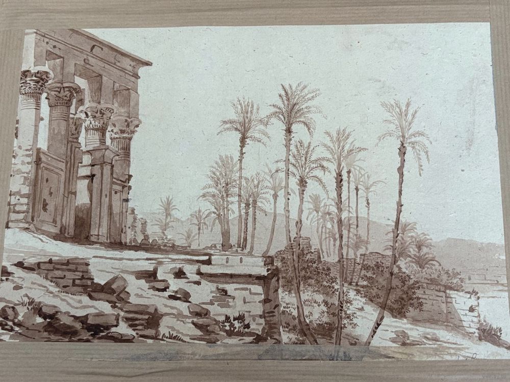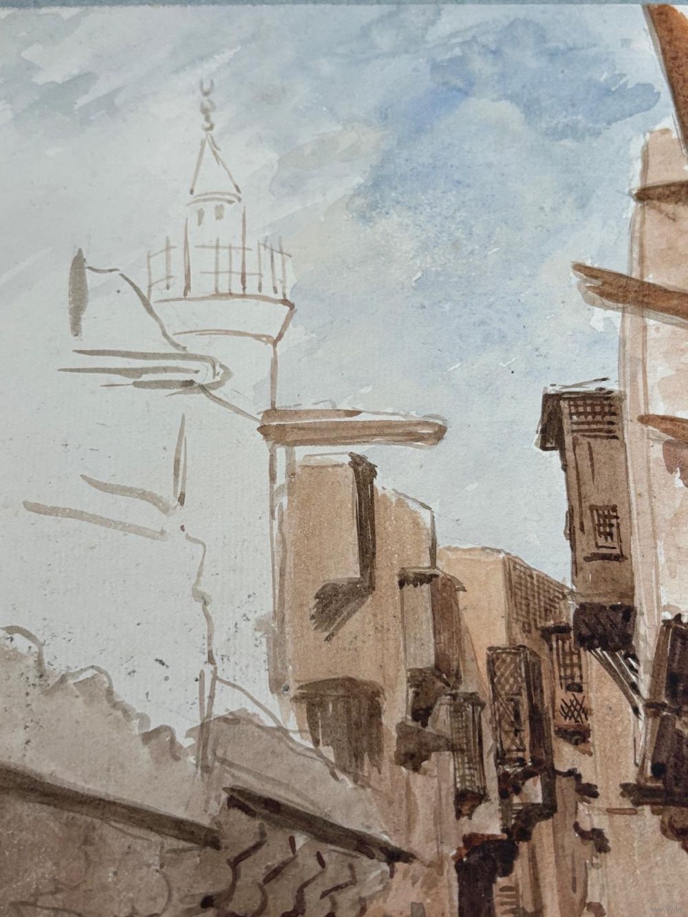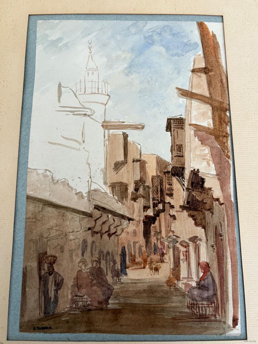 Редкая двусторонняя акварель на бумаге, XIX век.