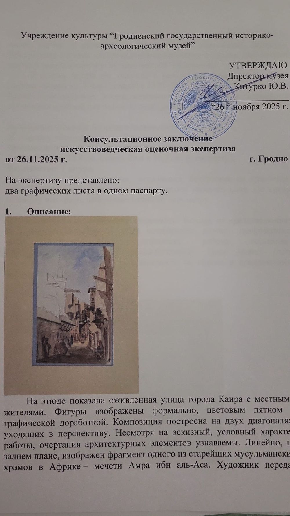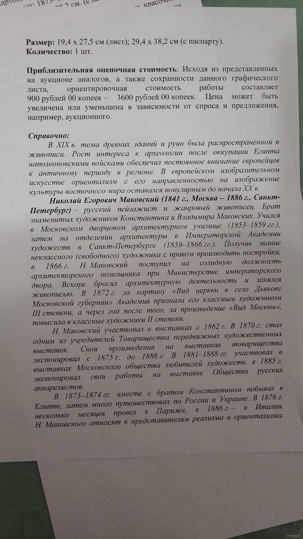 Финансовая оценка произведения - произведена исключительно для целей музейного выкупа