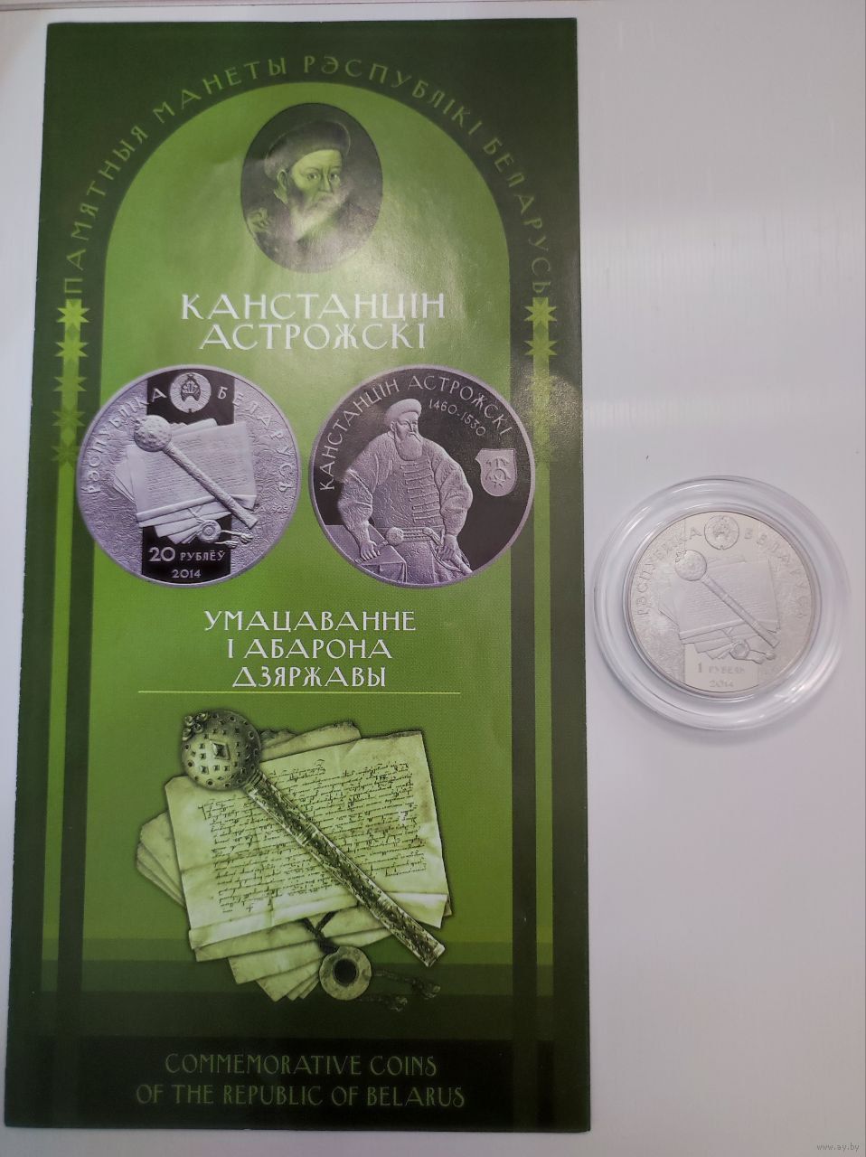 Константин Острожский 1 рубль Беларусь 2014 памятная монета капсуль буклет