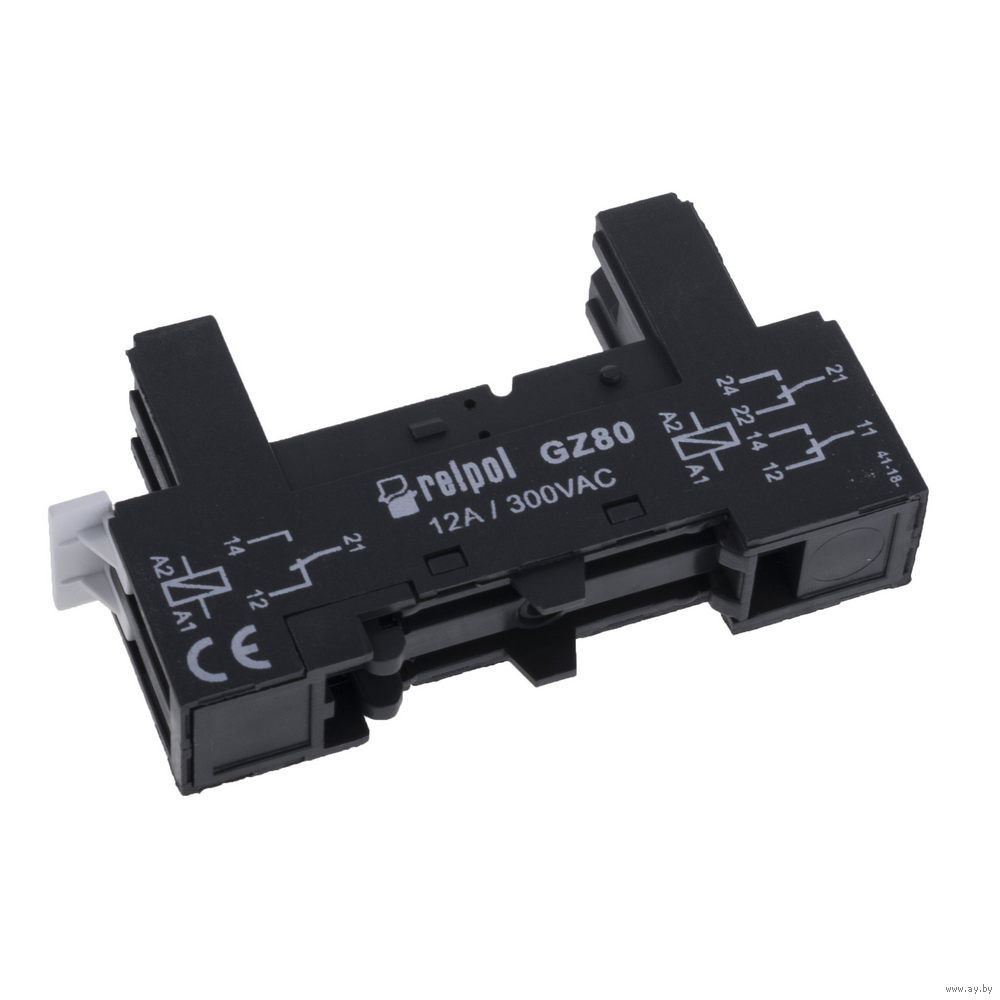 Контактная колодка RELPOL GZ80RELPOL GZS80 BL - Панелька PIN:8 12А 300ВAC Монтаж: DIN, на панель, -40-70°C. Контактная колодка, для реле типа RМ94/84 (винтовые соединения).