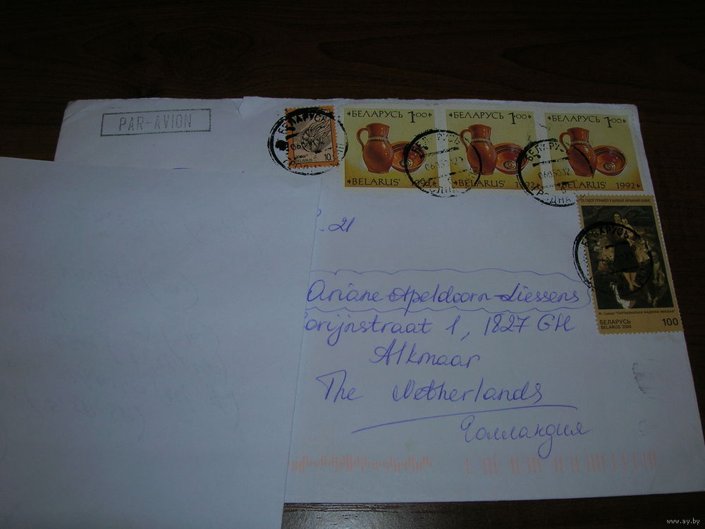 Конверт Беларусь Нидерланды Прошел почту Марки Беларусь