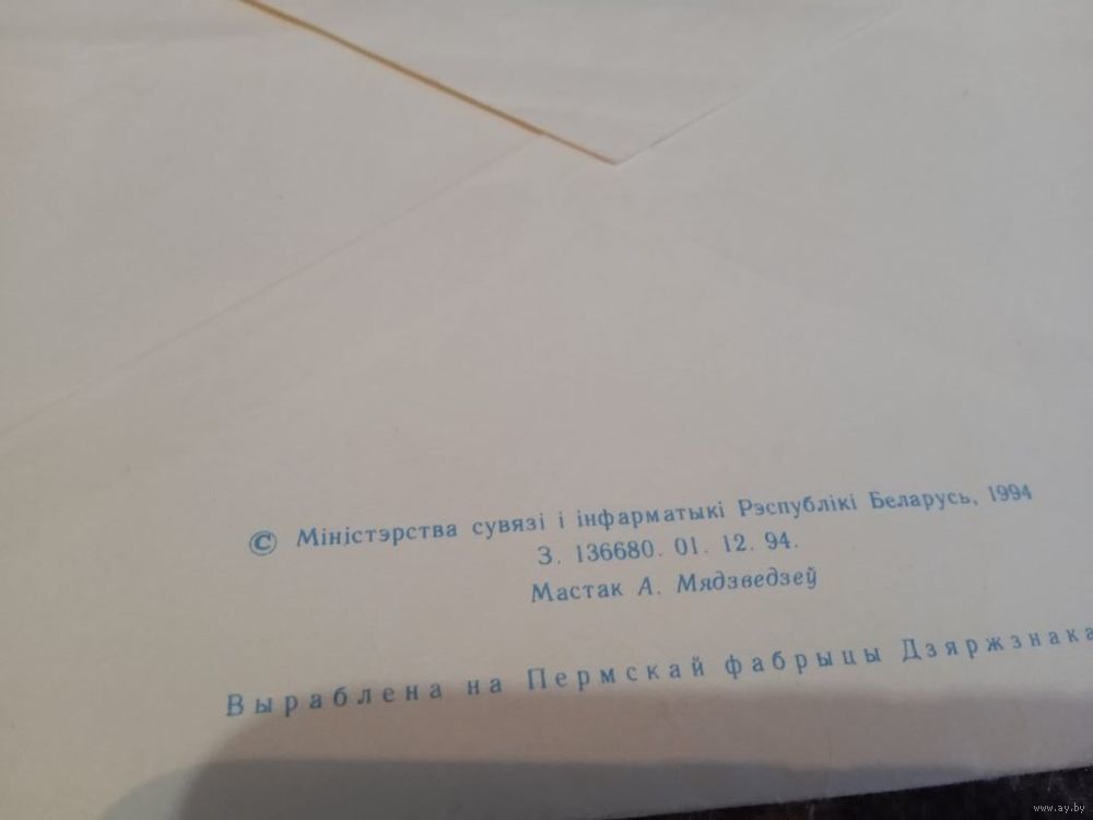 Конверт Бярэзiнскi бiясферны запаведнiк 1994г
