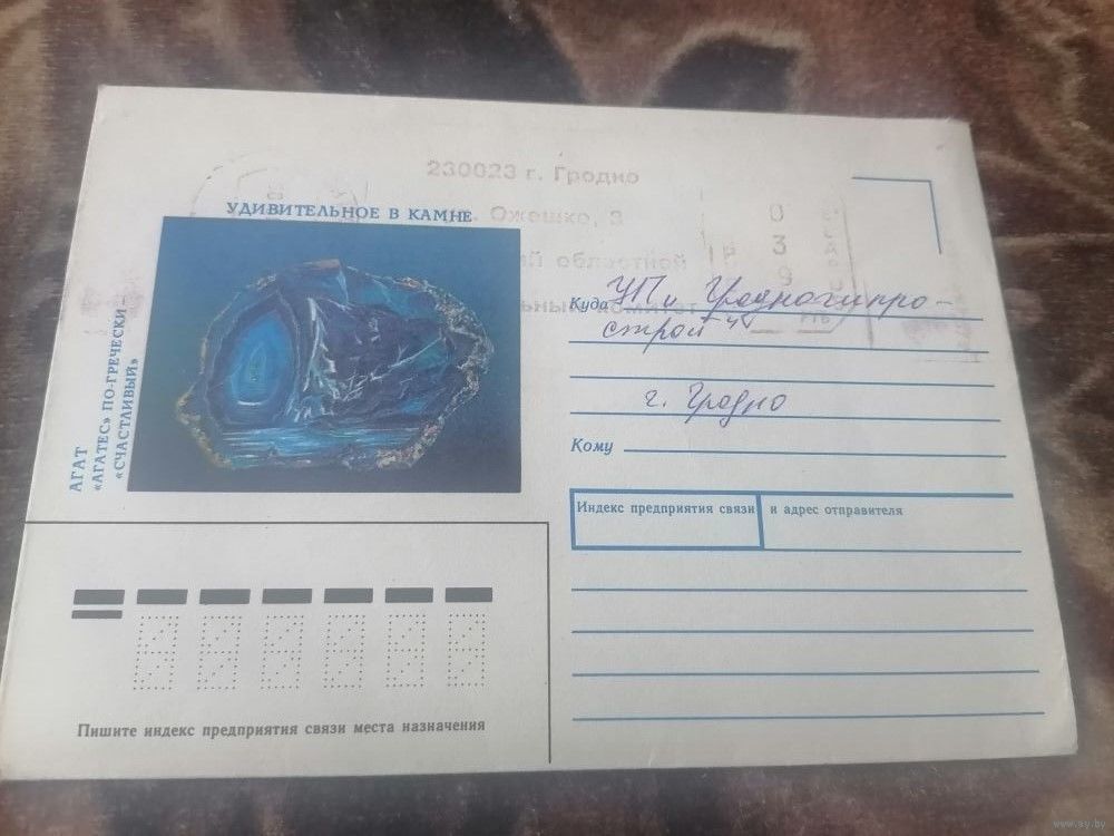 КОНВЕРТ ХМК гродногипрострой.Удивительное в камне.Агат.1991г