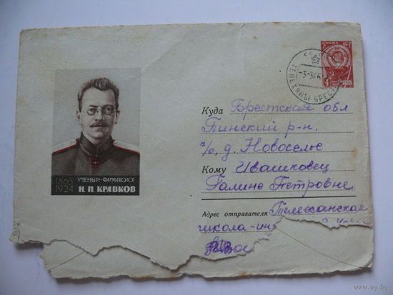 Конверт, ХМК, Художник Соколов С. Ф., Кравков Н. П., 1965, подписан.