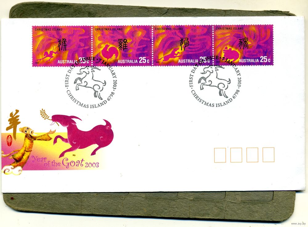 КОНВЕРТ ОСТРОВ РОЖДЕСТВА (АВСТРАЛИЯ) КПД 2003, год козы 4 марки