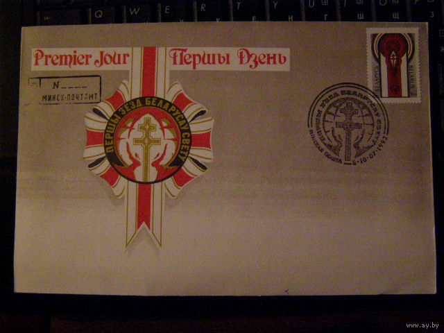 Конверт п д Першы з'езд БЕЛАРУСАУ СВЕТУ + марка 1993 года