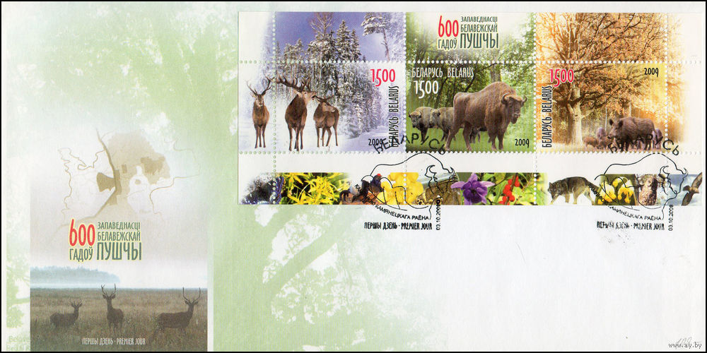 Конверт первого дня Беларусь "600 лет заповедности Беловежской пущи" 2009 год