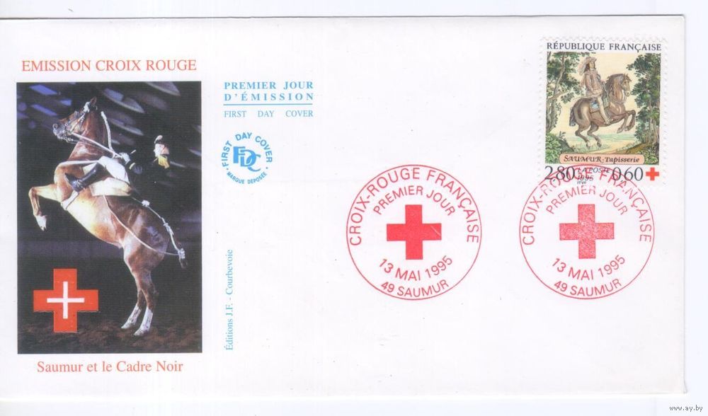 Конверт Первого Дня Франция 1995г. Лошади на почтовых марках. ГАШЕНИЕ СПЕЦШТЕМПЕЛЕМ.