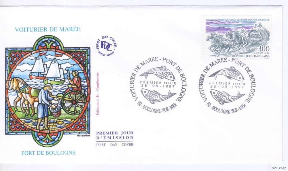 Конверт Первого Дня Франция 1997г. Лошади на почтовых марках. ГАШЕНИЕ СПЕЦШТЕМПЕЛЕМ.