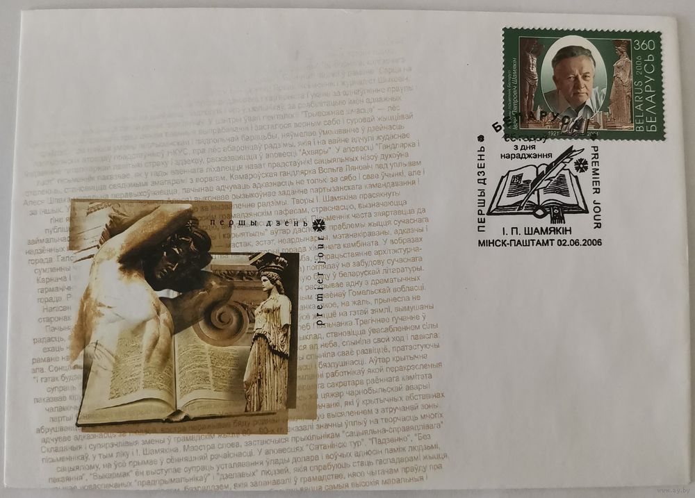 Конверт первого дня гашения "85 лет со дня рождения И. П. Шамякина"