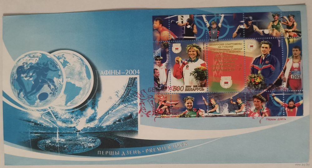Конверт первого дня гашения "Белорусские спортсмены на Играх ХХVIII Олимпиады в Афинах"