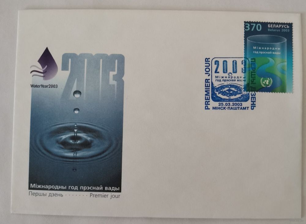 25 марта 2003 года в почтовое обращение вводится марка «Международный год пресной воды».Художник Ш. Хайрулин. Печать офсетная, полноцветная. Бум. мелован. Зуб. греб. 14¼: 14. Размер марки 28х40 мм. Тираж 90,0 тыс. На марке применены элементы защиты.