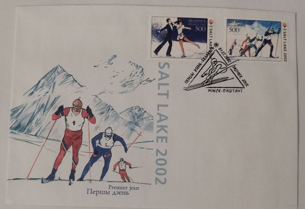 XIX зимние Олимпийские игры (марка № 449 «Фигурное катание», марка № 450 «Биатлон», конверт «Первого дня», штемпель спецгашения).