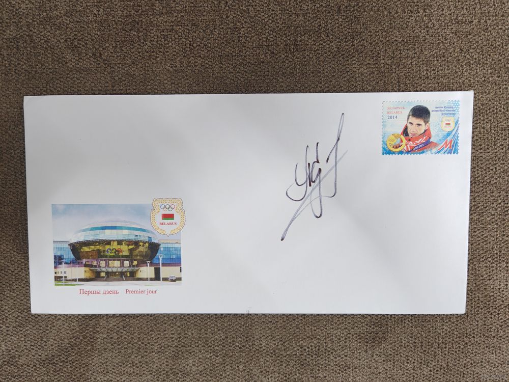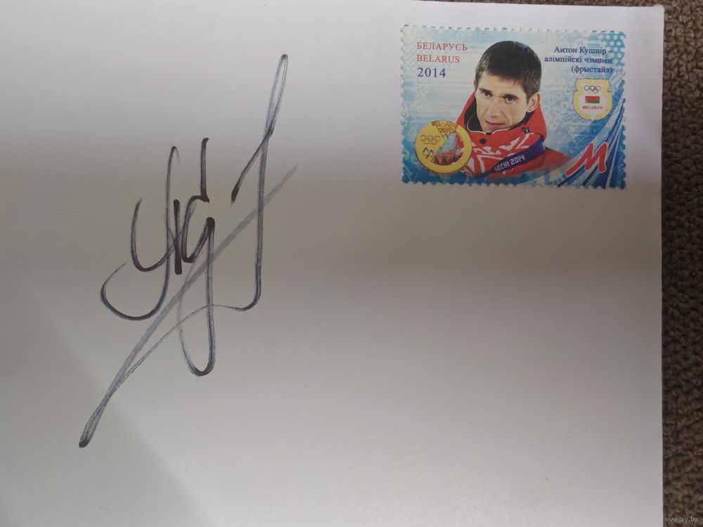 Оригинальный автограф Антона Кушнира (фристайл) 2014 год. Чемпион XXII зимних Олимпийских игр Сочи-2014 (лыжная акробатика).