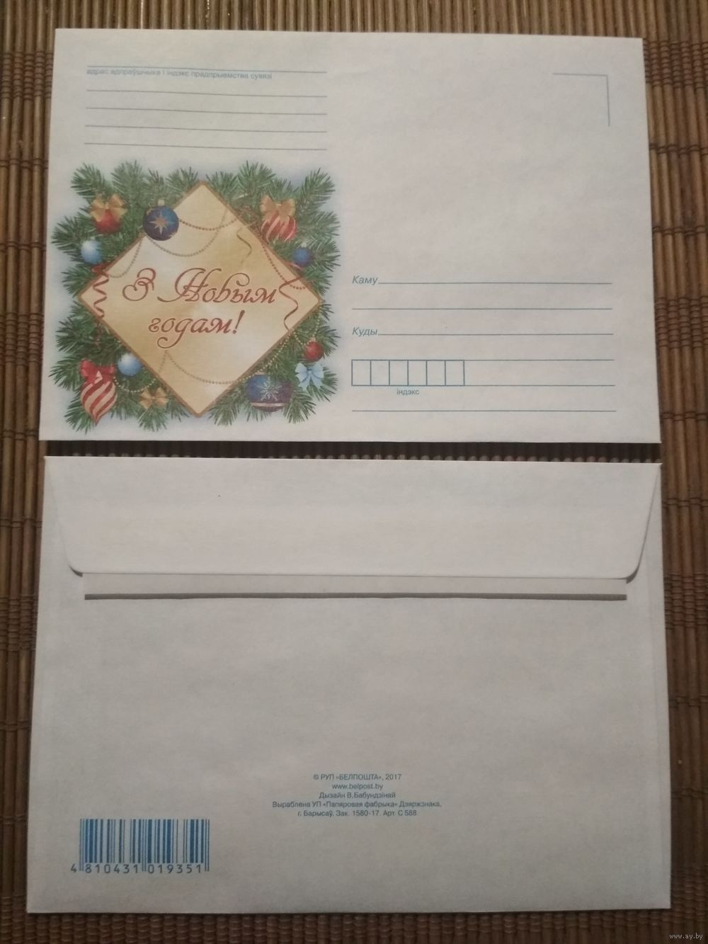 Конверт. С Новым годом! Белпочта. 2017 год