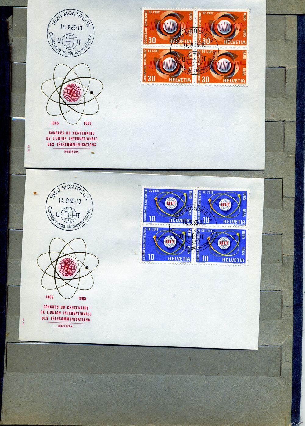 КОНВЕРТ ШВЕЙЦАРИЯ, КПД, 2шт столетие Международного союза электросвязи (МСЭ). 1965 а к/блок