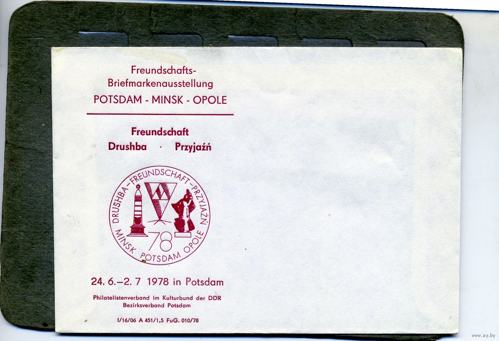 КОНВЕРТ ШВЕЙЦАРИЯ, КПД, памятная филателистическая карточка выпущен в ГДР к международной выставке почтовых марок