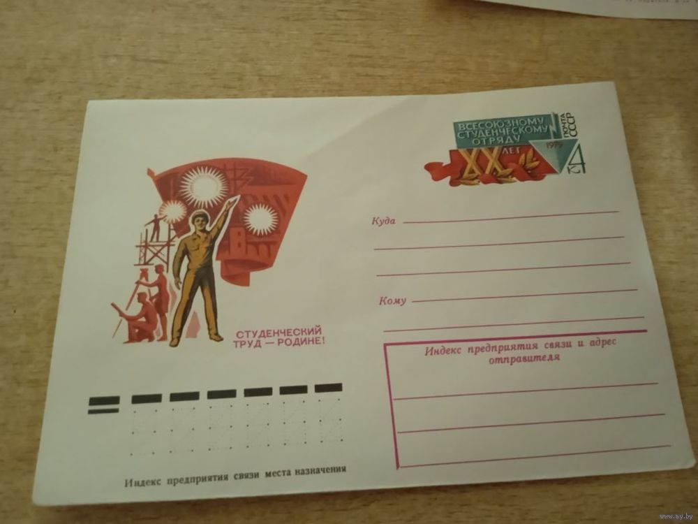 Конверт СССР ОМ XX лет Всесоюзному студенческому отряду
