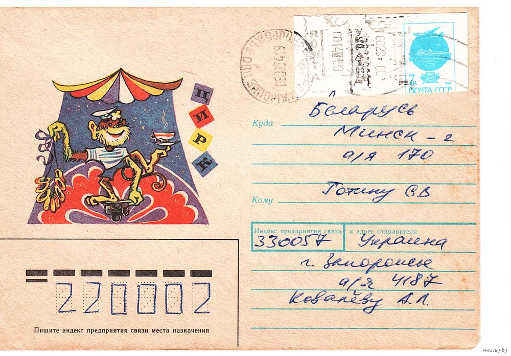 Конверт СССР, прошедший почту с редким провизорием