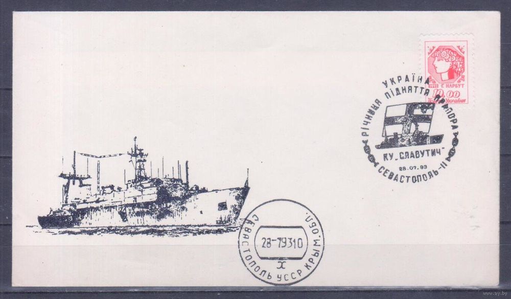 Конверт Украина 1993 г. Военно-морской флот.Корабль. СПЕЦГАШЕНИЕ.