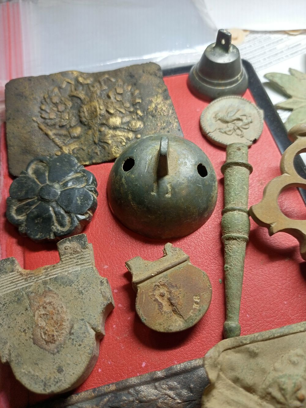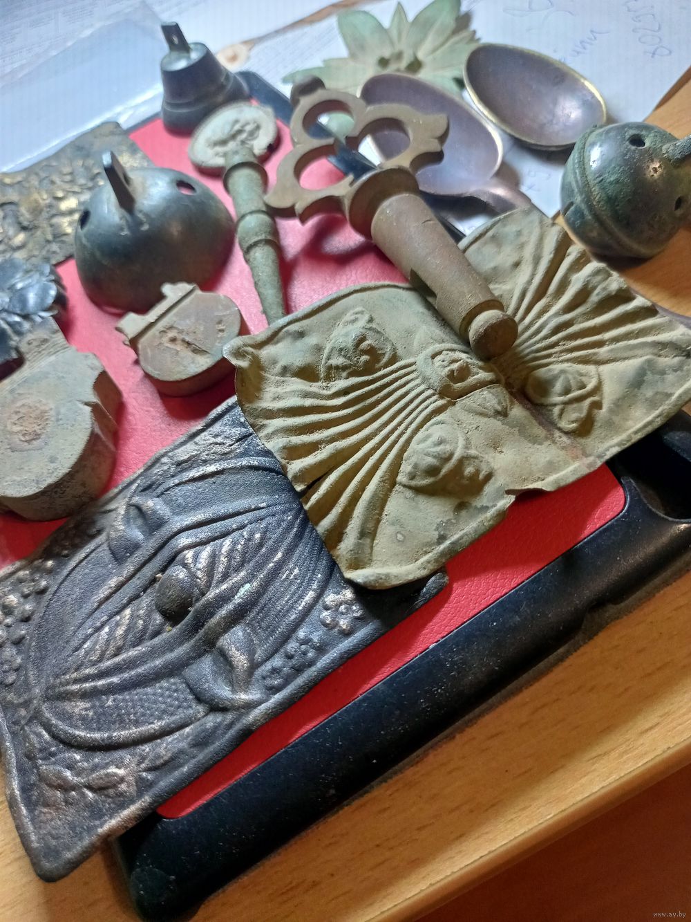 Наконечник аксельбанта,ложки старинные,шоры лошадиные,бронзовый бубенец,верток,замки старинные,бронзовые колокольчики,пряга артиллерия...