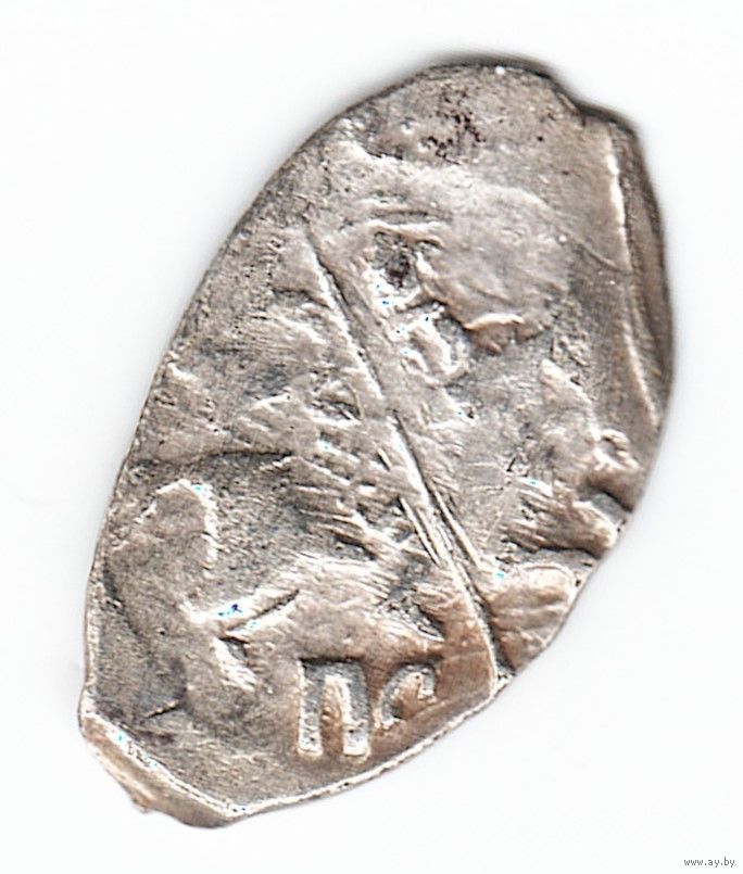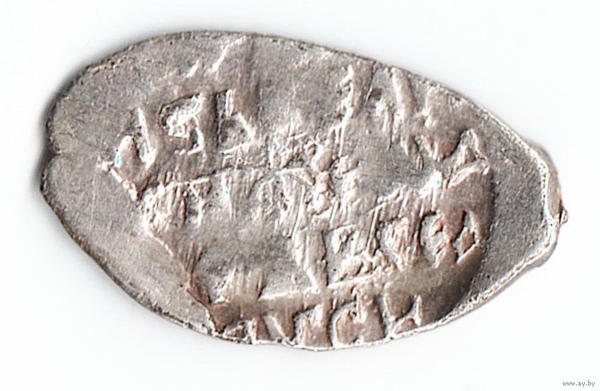 Дом Рюриковичей - Феодор I Иоаннович. Копейка. Чеканка в Пскове. Датировка ~1584-1598. Нормативный вес 0.68 гр.. В.Н. Клещинова, И.В. Гришина, №# 137. Л.ст.: Всадник в плаще с копьем скачет вправо. Буквы ПС под конём. Об.ст.: Русская легенда.