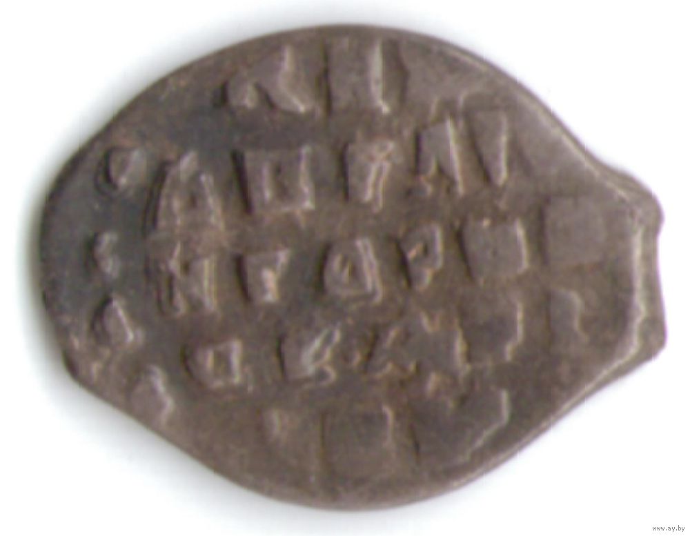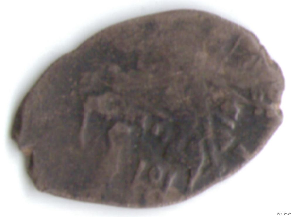 Дом Романовых - Михаил I Фёдорович. Копейка. Чеканка в Москве. Датировка ~1613 - 1645 года. Л.ст.: Всадник в плаще с копьем скачет вправо. Буквы О/М под конём. Об.ст.: Русская легенда.