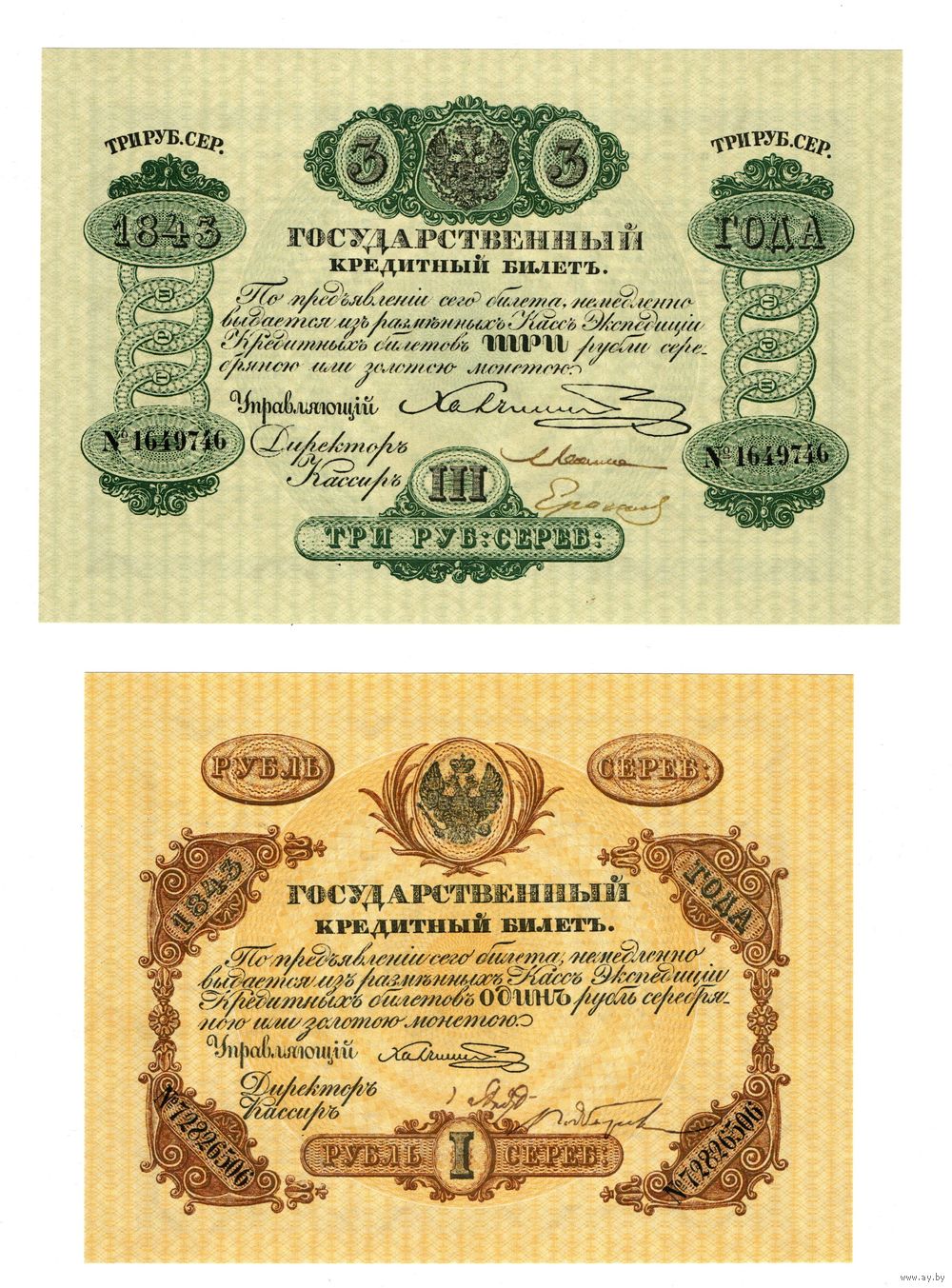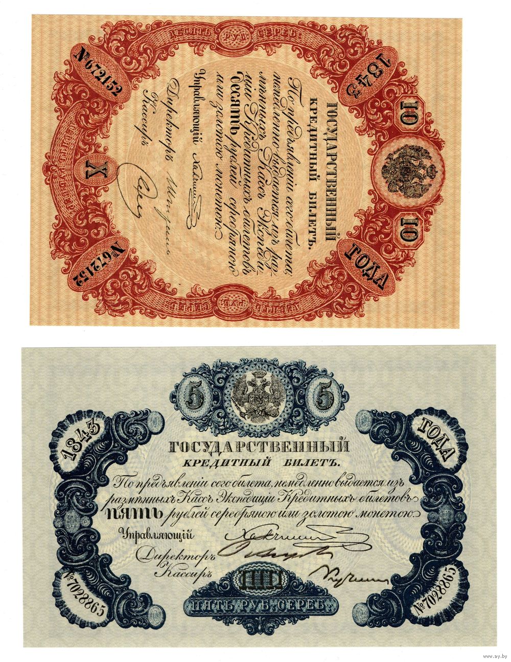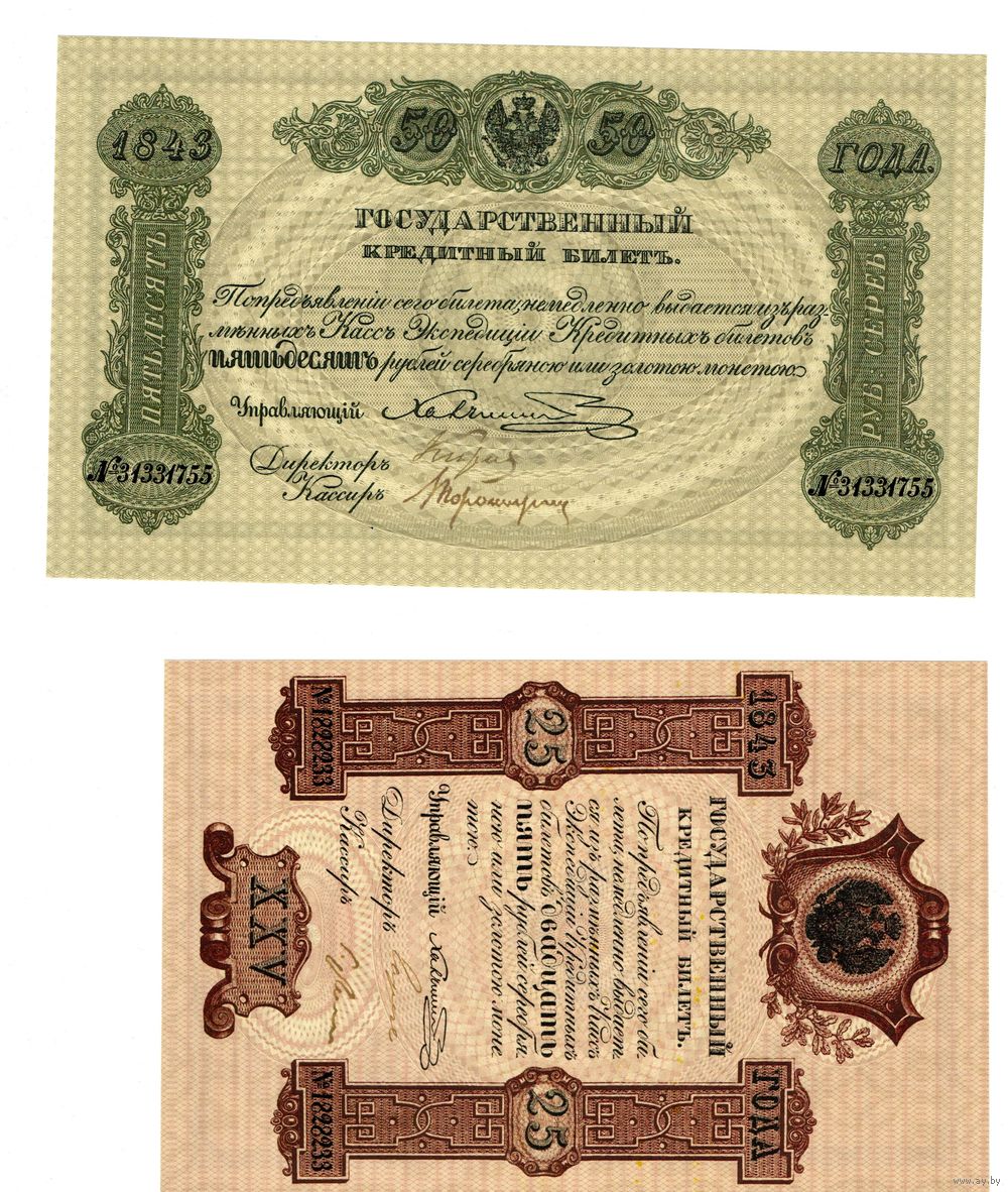 Государственные кредитные билеты 1843-1865 год Николай I - Александр II