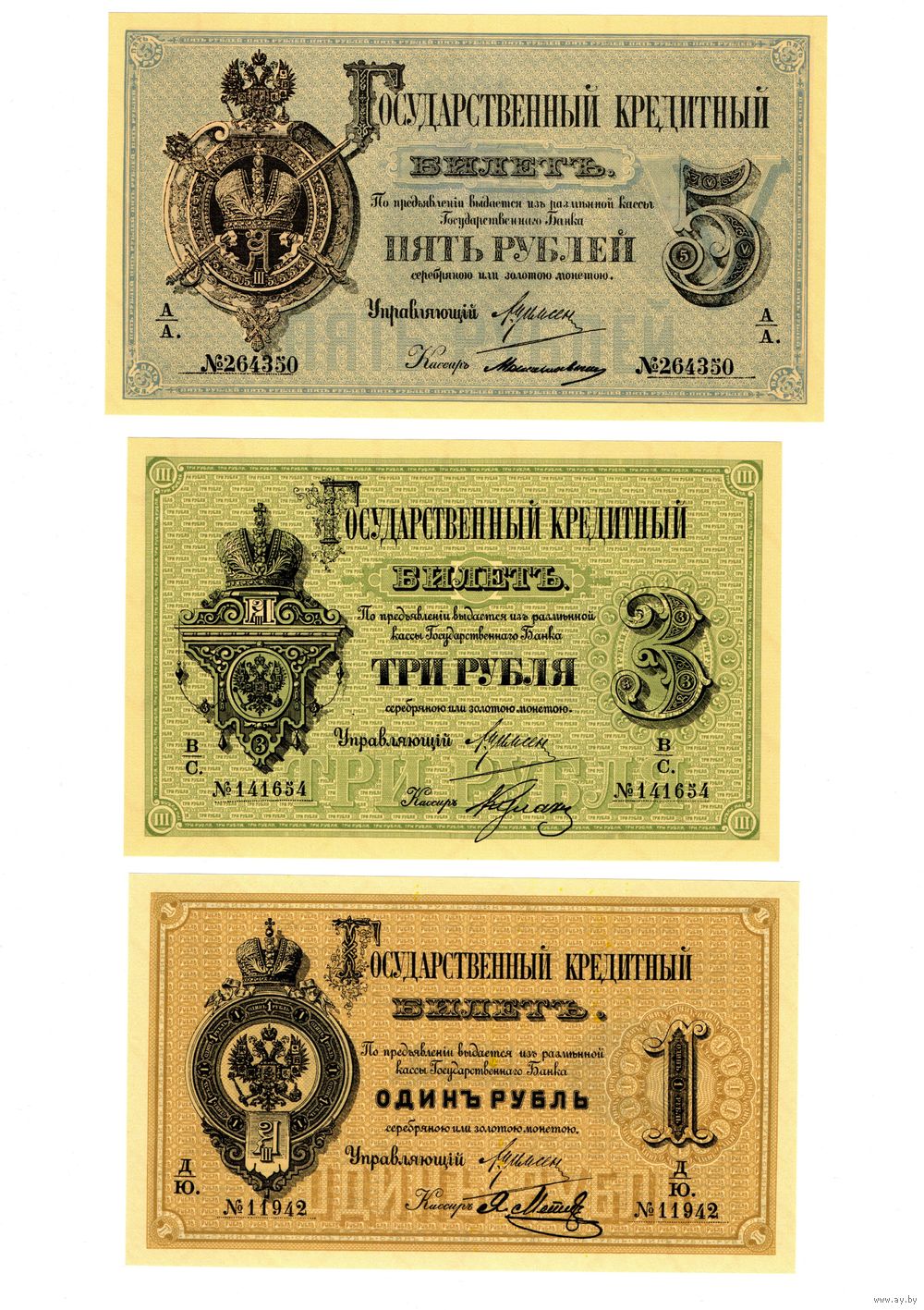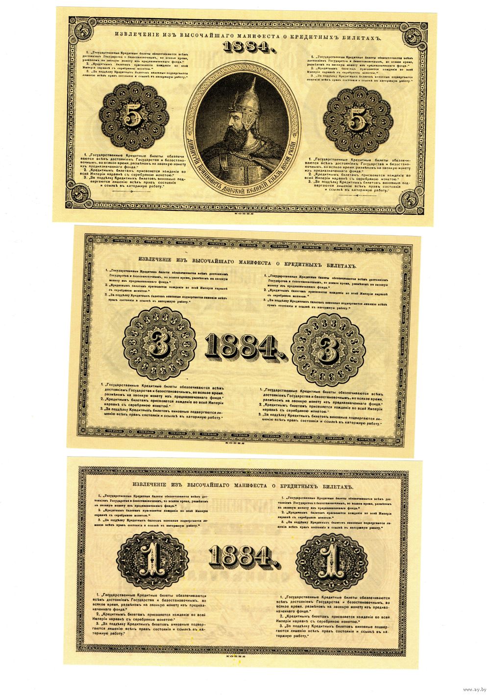 Государственные кредитные билеты 1882-1886 года выпуска. Вензель Александра III
