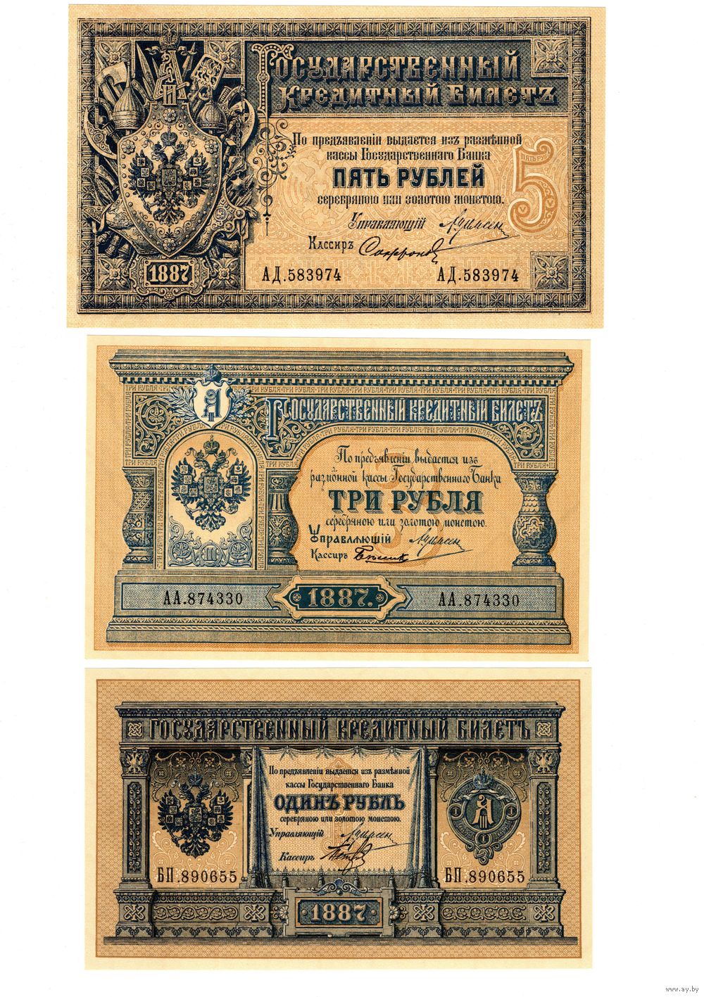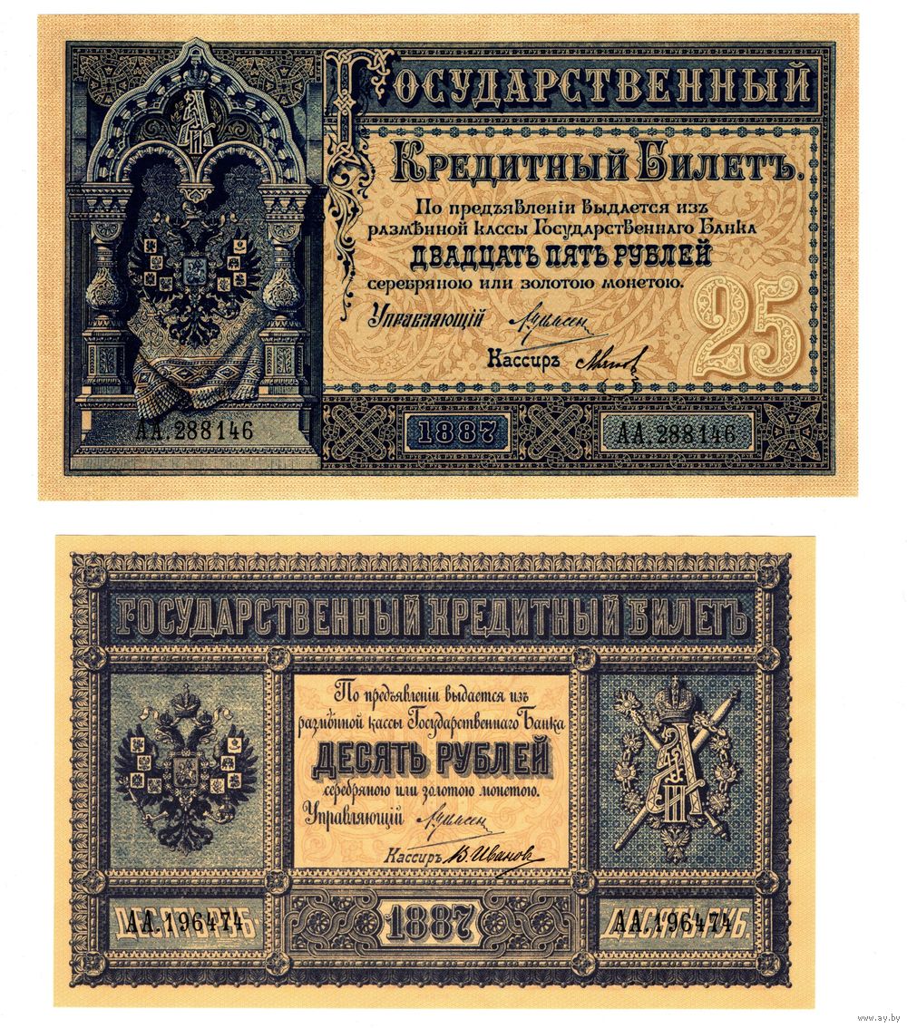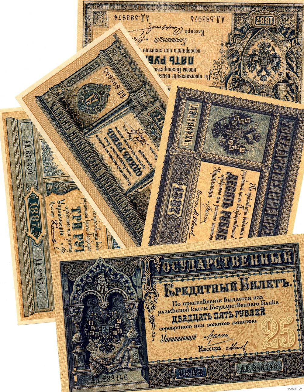 Государственные кредитные билеты 1887-1894 год выпуска. Вензель Александра III