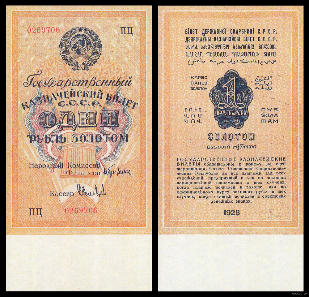 [КОПИЯ] 1 рубль золотом 1928г. (Соловьев) с водяным знаком