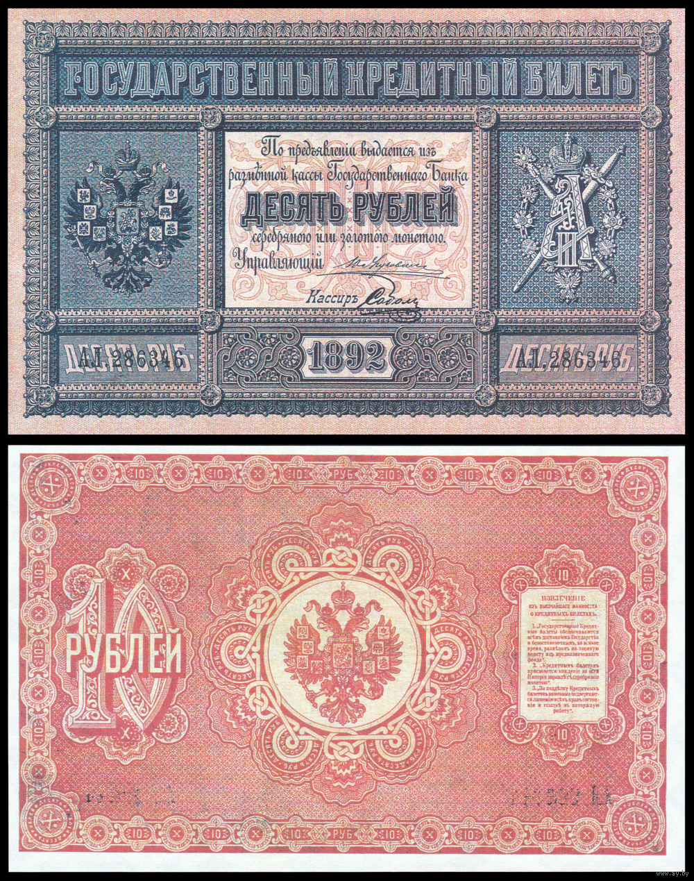 [КОПИЯ] 10 рублей 1892г. Упр. Жуковский-Соболь (водяной знак)