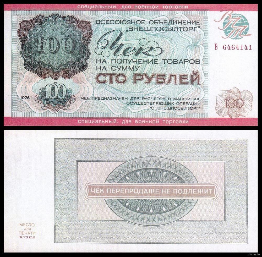 ![[КОПИЯ] Чек ВПТ 100 рублей 1976г. (военторг)](https://s1-lot.aystatic.by/550x510/810/909/5040/5040909810_0.jpg)