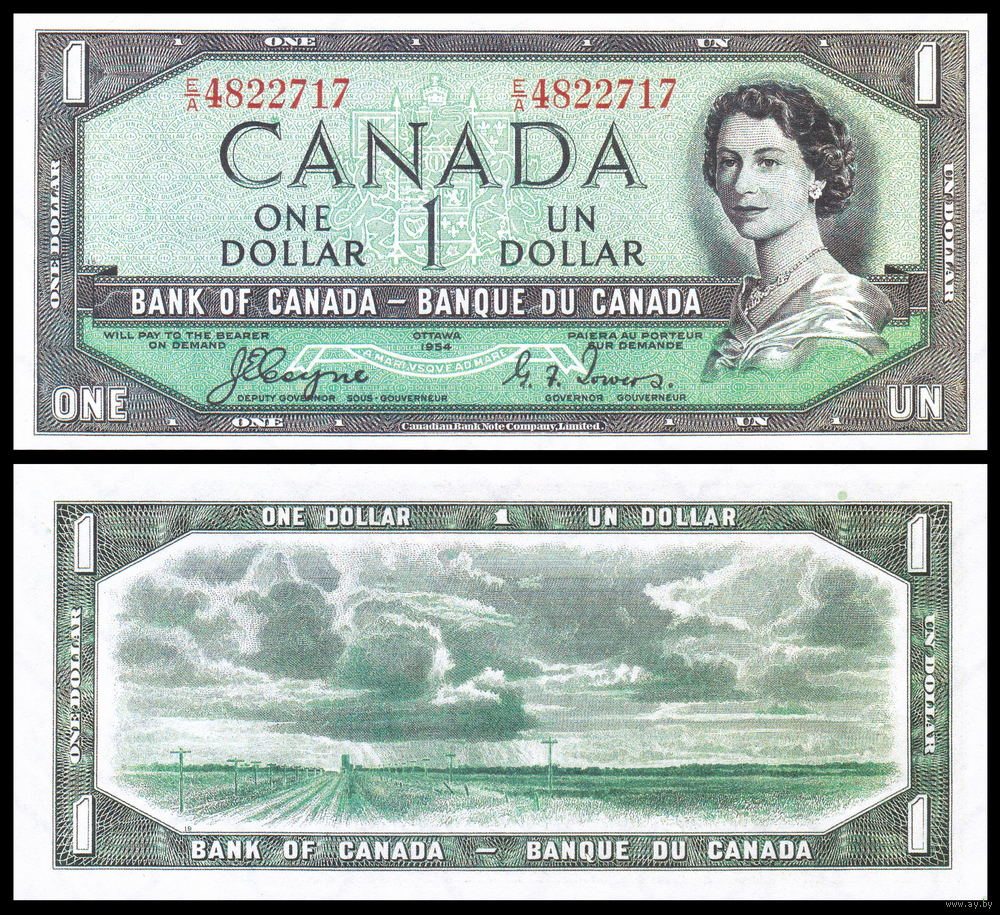 [КОПИЯ] Канада 1 доллар 1954г. (серия: Devil Face) водяной знак