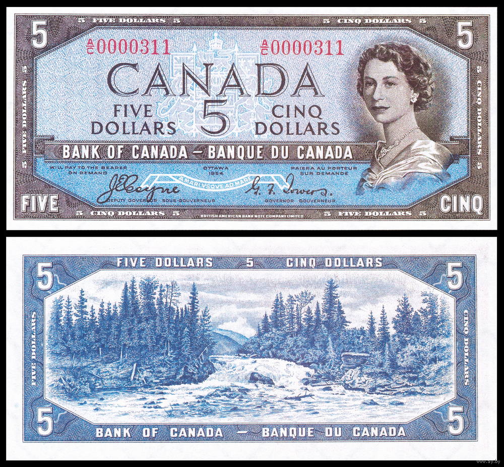 [КОПИЯ] Канада 5 долларов 1954г. (серия: Devil Face) водяной знак