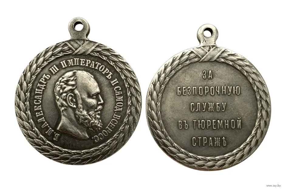 Копия Медаль За безпорочную службу в тюремной страже Александр lll