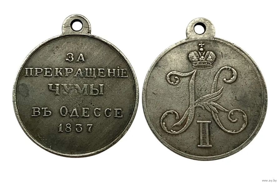 Копия Медаль За прекращение чумы в Одессе 1837 год