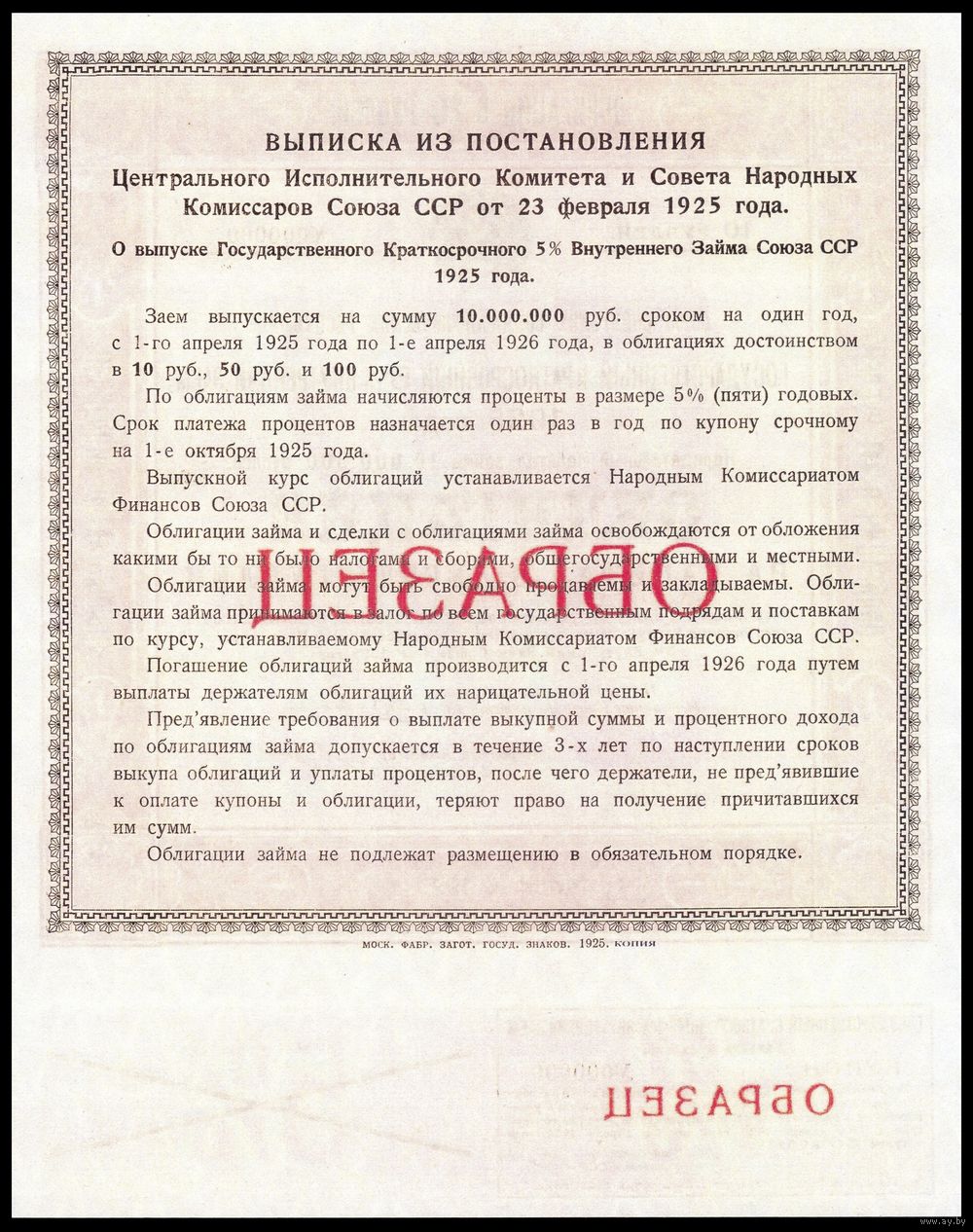 ![[КОПИЯ] Облигация 10 рублей 1925г. 5% (Образец) водяной знак](https://s3-lot.aystatic.by/550x510/724/129/5031/5031129724_2.jpg)